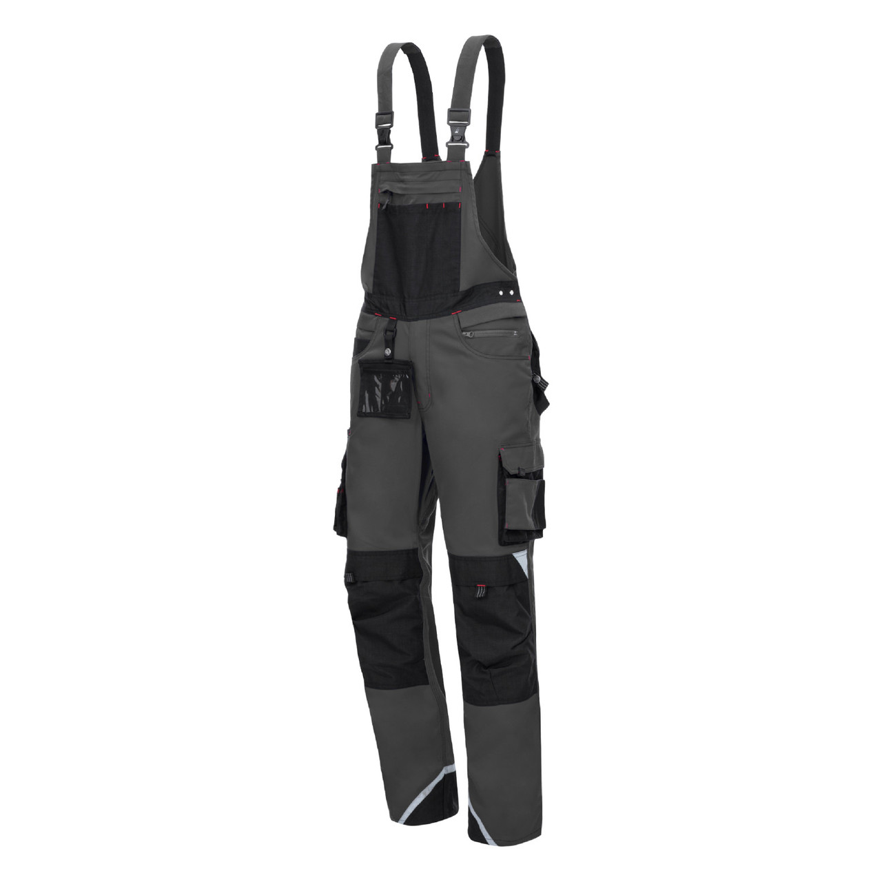 NITRAS MOTION TEX PRO FX, комбинезон, серый/черный, 280 г/кв.м, дышащий материал, очень высокий комфорт при ношении (растяжение в двух направлениях), эластичная талия, усиления в области промежности и усиления из CORDURA® на штанинах, коленях и задних карманах, а также на внешнем кармане комбинезона и лодыжках, прочные тройные швы, светоотражающий материал 3M Scotchlite™ для лучшей видимости, универсальный и практичный, оснащен: набедренные карманы с клапанами, карман для линейки, внутренний карман комбинезона с молнией YKK и дополнительные внешние карманы, карманы на коленях для протекторы со вставкой сверху, регулируемая петля для молотка, D-образное кольцо, карман для удостоверения личности, прочные клипсы, эластичные ремни, высочайшее качество, OEKO-TEX STANDARD 100®, Comfort Fit, карманы для инструментов 770P и наколенники 76K (EN 14404) доступны опционально.